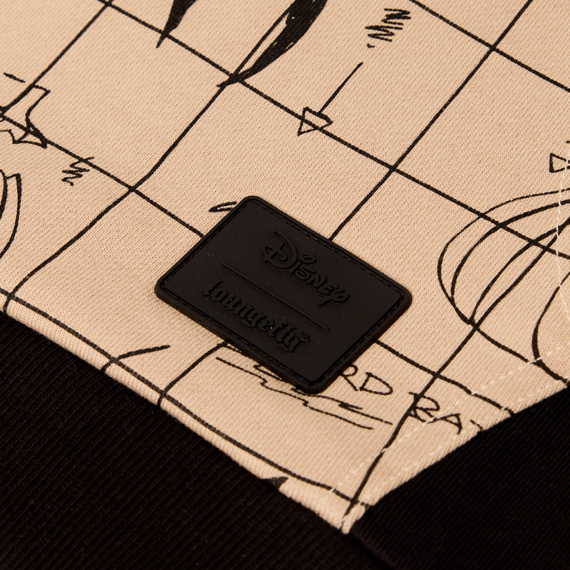 It’s official! If you’re visiting Halloween Town, you’ll definitely want to take along our Disney Tim Burton’s Mayor of Halloween Town Hoodie. He’s got the perfect plans—and they appear right on the front of this comfy hoodie. The plans for next year’s Halloween Town celebration double as a pocket for warming your hands. At the neck, you’ll recognize the collar portion for the Mayor’s costume, which includes a black spider. On each sleeve, his face appears. On one sleeve, his face appears in full color, and on the other, his face is pale. Both faces glow in the dark—along with the white-collar details. An embroidered mayoral ribbon also appears on the front. Look hauntingly stylish wherever you go!